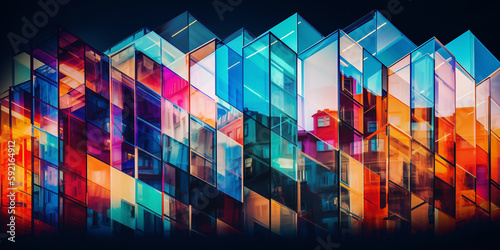 The watermark will not be included on Canvas Print.: Multiple exposure of modern abstract glass architectural forms - generative ai