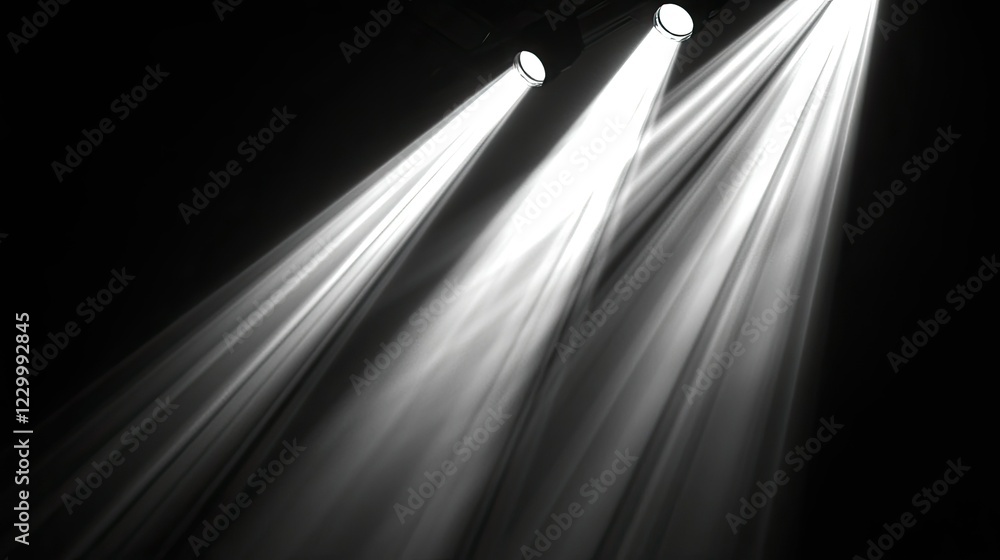 The watermark will not be included on Canvas Print.: Multiple spotlights cut through the darkness, casting intersecting beams of light -