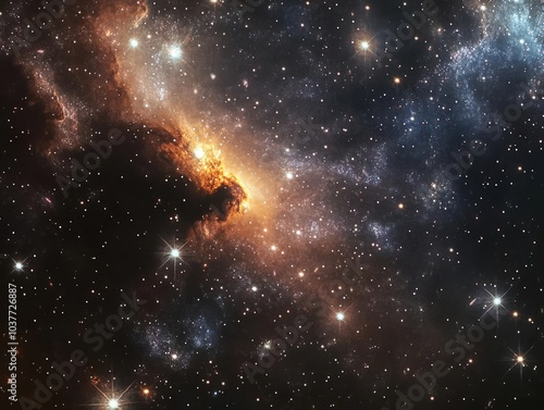 Canvas Print : Mystical galaxy with dark voids and sparkling star clusters