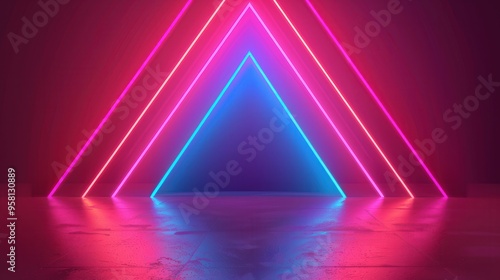 The watermark will not be included on Canvas Print.: Neon geometric fusion, an abstract futuristic backdrop featuring vibrant geometric shapes and dynami
