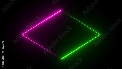 The watermark will not be included on Canvas Print.: Neon glowing rectangular empty frame illustration - abstract glowing neon rectangle border frame on b