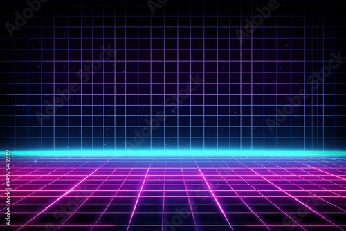 Canvas Prints neon grid with vibrant colors illuminated against a dark background conveying a retro futuristic atm