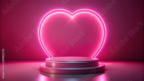 Canvas Prints neon heart shape lighting on a pedestal with a soft glow creating a romantic ambiance.