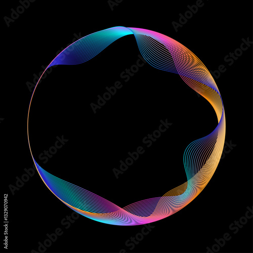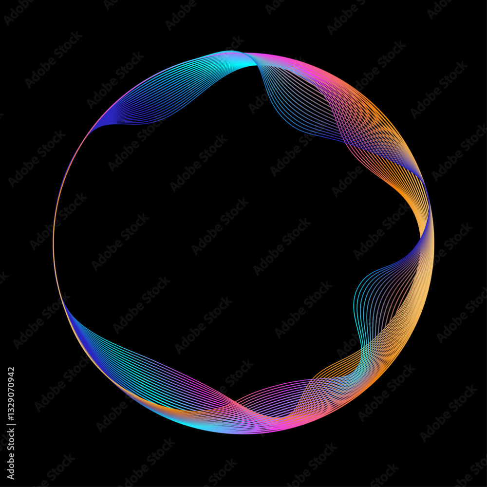 The watermark will not be included on Canvas Print.: Neon iridescent blend line circle frame - bright spinning circular border - abstract rainbow color cir