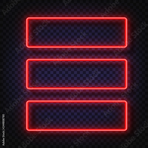 The watermark will not be included on Canvas Print.: Neon light banners set - vector neon light frame sign - realistic glowing red neon frames isolated on