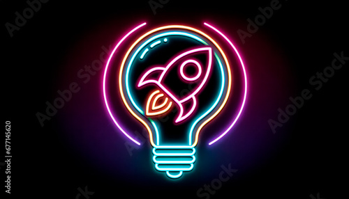 Canvas Prints neon light bulb with rocket icon. generative ai