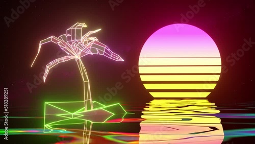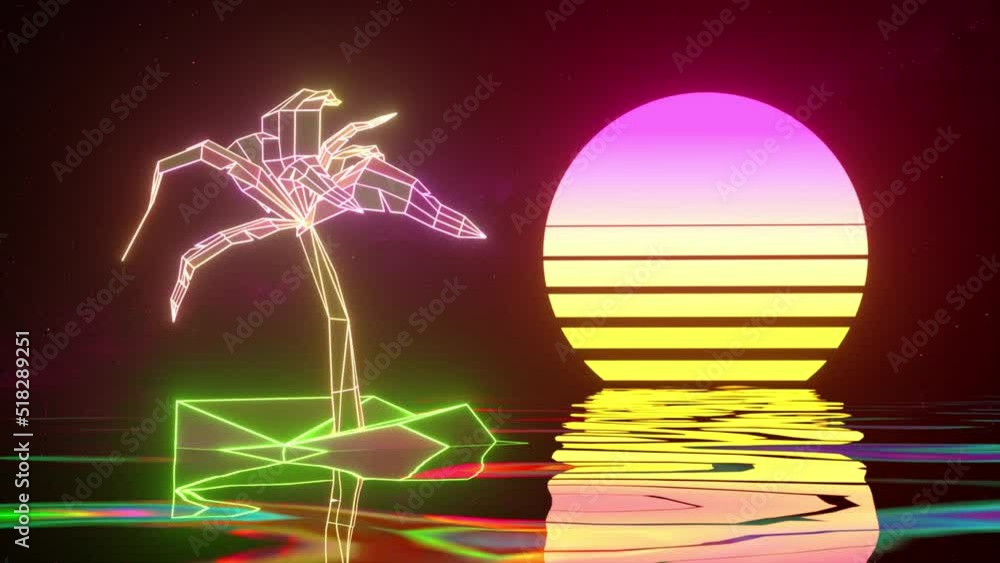 Canvas Prints neon palm tree on a retro background. water surface. yellow pink color. 3d animation of seamless loo - Canvas Prints Canvas Prints neon palm tree on a retro background. water surface. yellow pink color. 3d animation of seamless loo - Canvas Prints