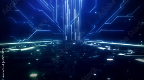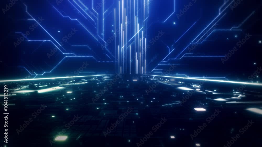 Canvas Print : Neon reflection vj universal background loop - 3d rendering - travel passing neon nebula on light brid