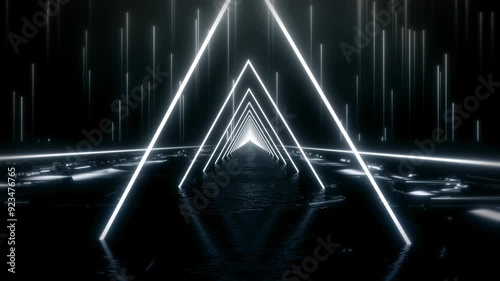 The watermark will not be included on Canvas Print.: Neon reflection vj universal background loop - travel passing neon nebula on light bridge with reflec