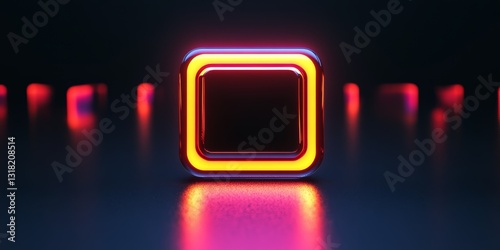 The watermark will not be included on Canvas Print.: Neon square glow with futuristic lighting in dark environment
