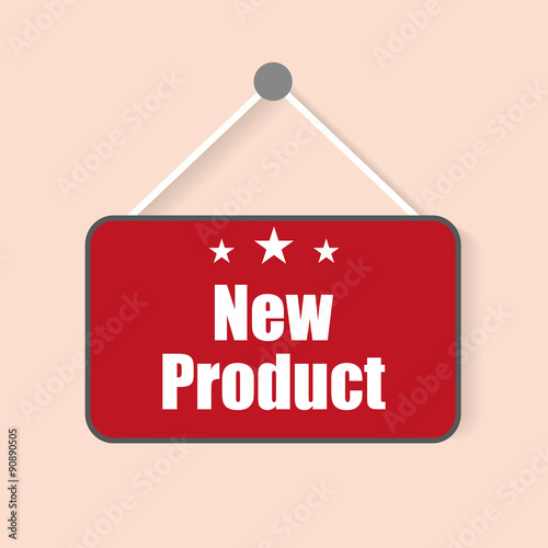 The watermark will not be included on Canvas Print.: New product sign with shadow hanging on a light background