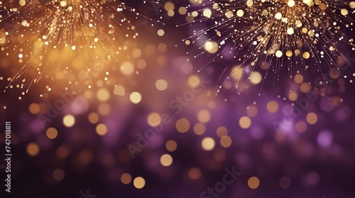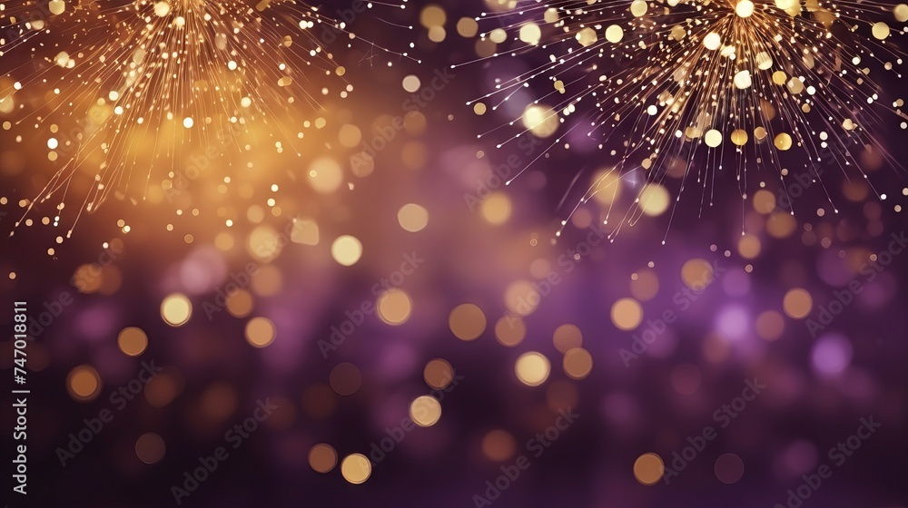 Canvas Prints new year celebration with gold and violet fireworks and bokeh effect. abstract holiday background wi