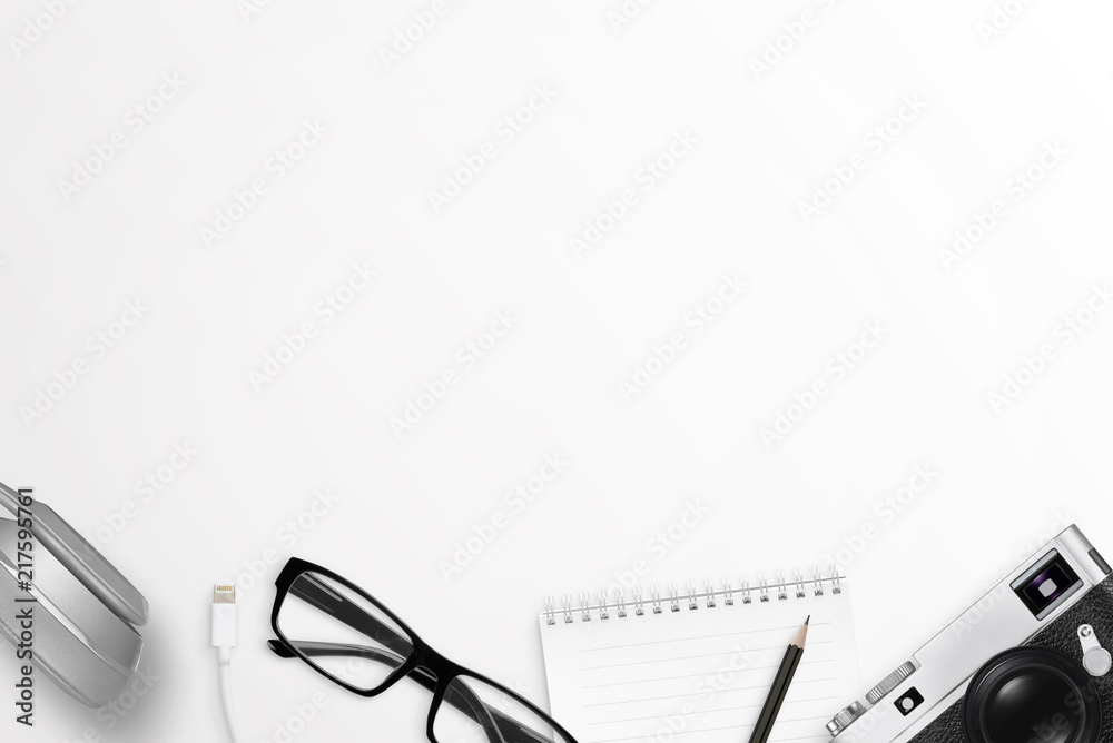 Canvas Prints office accessories on desk bottom. free space on top for text. flat lay scene. office desk compositi