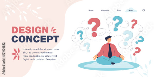 Canvas Prints office worker sitting in lotus position and question marks. man in suit meditating with closed eyes
