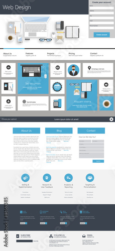 Canvas Print : One page falt website design template - vector eps10
