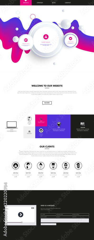 Canvas Print : One page website template with abstract header design -