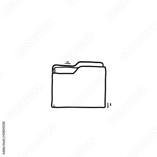 Canvas Print : Open folder icon - folder with documents on white background with hand drawn doodle cartoon line art