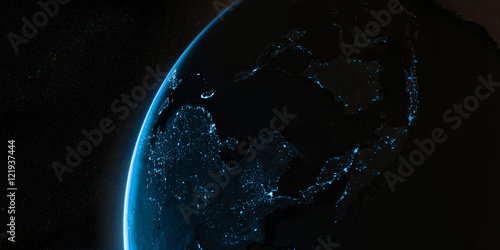 The watermark will not be included on Canvas Print.: Orbital view on earth from space