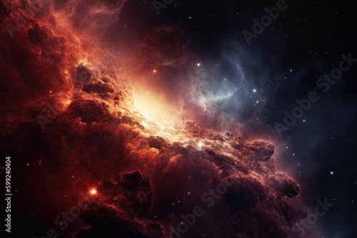 Canvas Print : Outer space nebula red sky formation asteroid passing through the dust clouds