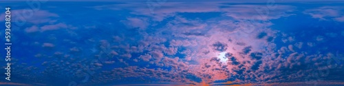 Overcast sky panorama on sunset with cumulus clouds in seamless spherical equirectangular format as Canvas Print