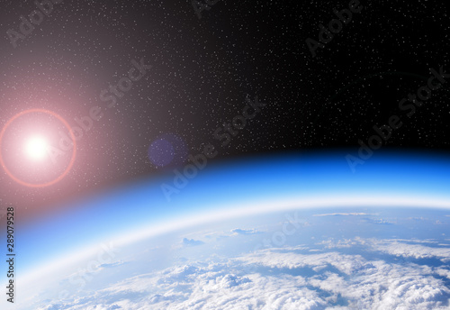 The watermark will not be included on Canvas Print.: Ozone layer from space view of planet earth with sun