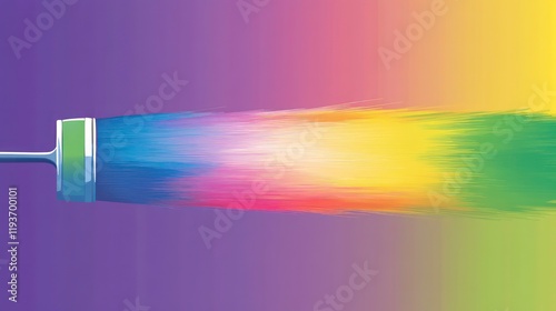 The watermark will not be included on Canvas Print.: Paintbrush creating a vibrant burst of colors, spreading in strokes of rainbow hues on a gradient ba