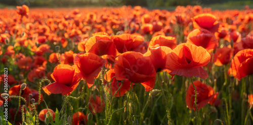Canvas Prints panorama of magnificent red poppies illuminated by the setting sun