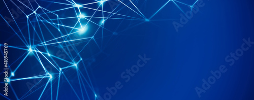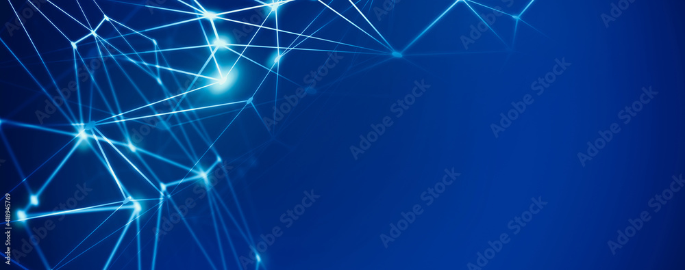The watermark will not be included on Canvas Print.: Panoramic abstract dot and triangle connection, the world is connect and smaller concept, digital fu