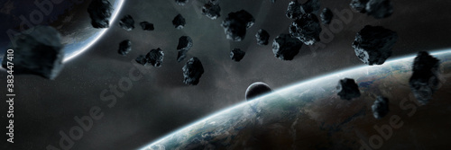 Canvas Prints panoramic space planets background. panorama of distant solar system with exoplanets 3d rendering el