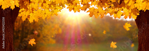 Canvas Print : Panoramic view colorful forest in fall season - beautiful autumn landscape with golden trees