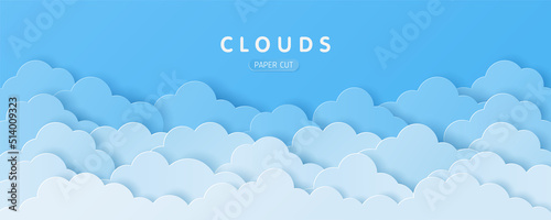 The watermark will not be included on Canvas Print.: Paper craft art style of clouds on blue sky background with copy space for your text - vector illustr