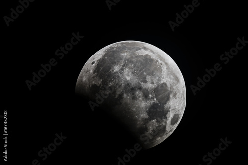 The watermark will not be included on Canvas Print.: Partial lunar eclipse after its maximum contact at 2 - 20 am from kota kinabalu, sabah on the 8th of a