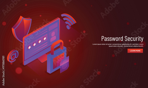 The watermark will not be included on Canvas Print.: Password security concept, responsive hero image design with isometric view of login window with loc