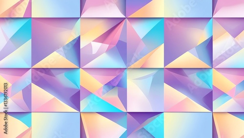 The watermark will not be included on Canvas Print.: Pastel geometric abstract pattern: a symphony of soft hues and triangles