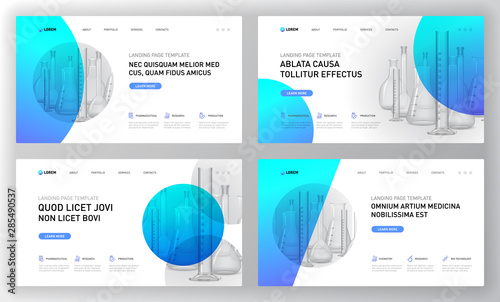 The watermark will not be included on Canvas Print.: Pharmaceutical landing pages templates set - medical web page design concept layout for website - vect