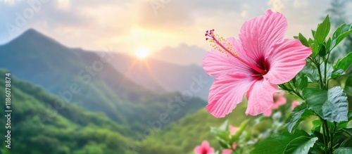 Canvas Prints pink hibiscus flower on the mountain soft focus. with copy space image. place for adding text or des