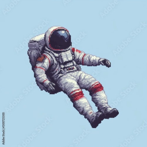 The watermark will not be included on Canvas Print.: Pixelated astronaut floating in space