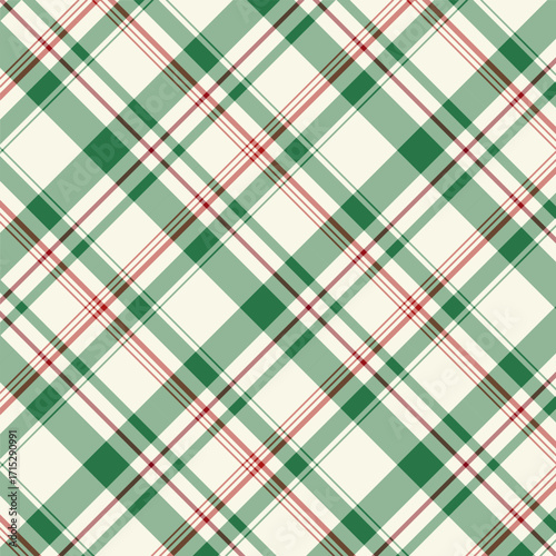 The watermark will not be included on Canvas Print.: Plaid repeat pattern in beige green red - checkered tartan gingham seamless pattern for christmas and