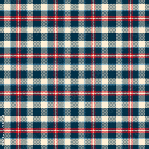 The watermark will not be included on Canvas Print.: Plaid with twill weave repeat pattern - checkered tartan gingham seamless pattern in blue red beige - ge