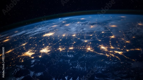 The watermark will not be included on Canvas Print.: Planet earth at night with visible light connections generative ai