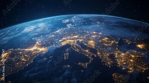 The watermark will not be included on Canvas Print.: Planet earth at night with visible light connections generative ai