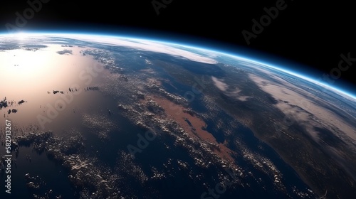 The watermark will not be included on Canvas Print.: Planet earth horizon space background - generative ai technology -