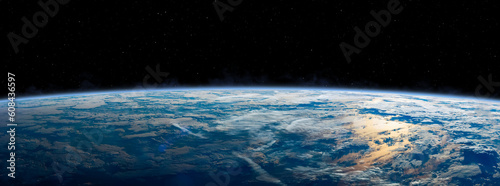 Canvas Prints planet earth in outer space. panoramic view of the earth, stars and galaxy. wide horizontally image.