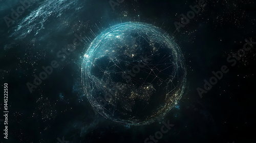 The watermark will not be included on Canvas Print.: Planet earth in space , binary code technology , glowing sphere on black background