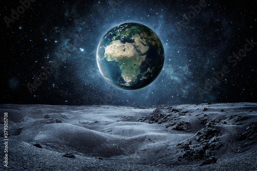 Canvas Prints planet earth seen fron the moon surface with copy space