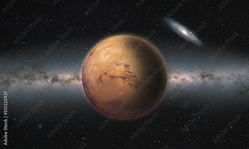 Canvas Print : Planet mars with stars in deep space andromeda and milky way galaxy in the background " elements of