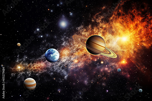 The watermark will not be included on Canvas Print.: Planets galaxy outer space background
