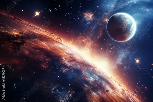 The watermark will not be included on Canvas Print.: Planets galaxy outer space background