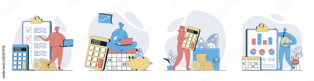 Canvas Print : Planning financial budget concept set in flat design for web - collection with people analyzing perso