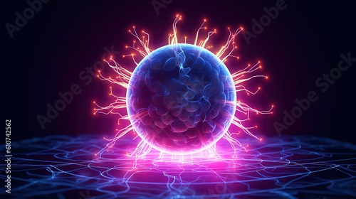 The watermark will not be included on Canvas Print.: Plasma ball on black - plasma ball with binaries - generative ai